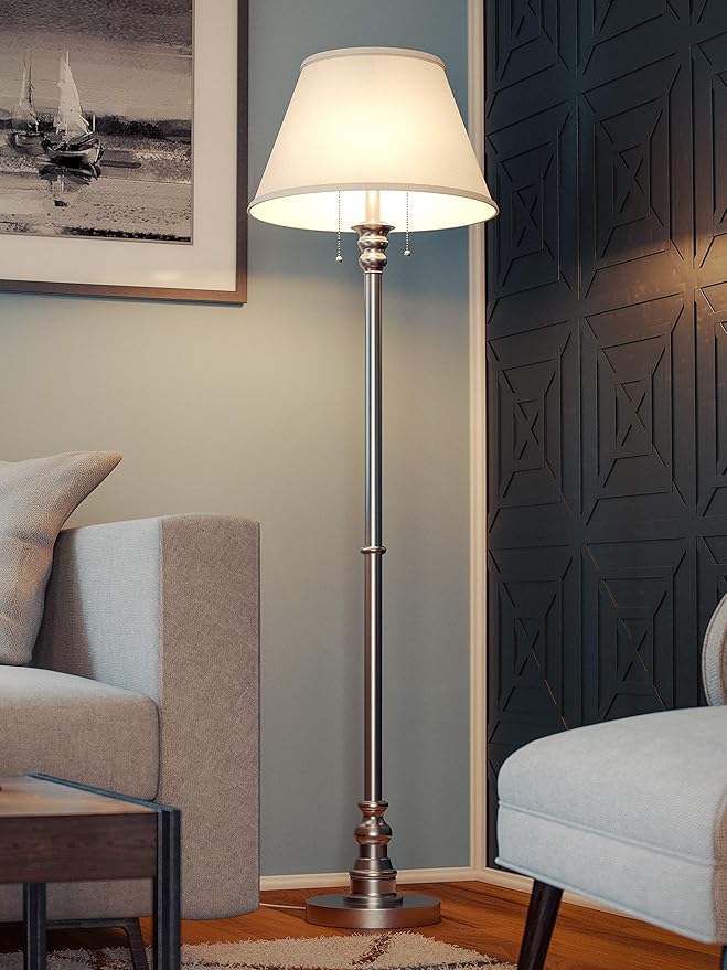 - Modern Floor Lamp: The elegant indoor floor lamp with a brushed steel finish and a white linen shade adds the perfect rustic accent to your home decor
