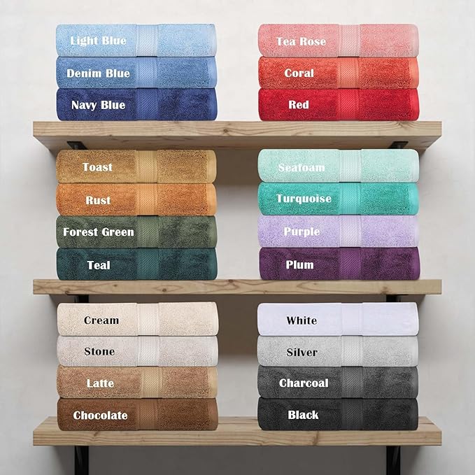 - πππππππ ππππ πππ: These towels are crafted from Egyptian Cotton pile fibers that are naturally strong, absorbent, and soft; heavyweight and plush; Set includes: 2 Hand (30"L x 16"W), 2 Bath (55"L x 30"W) and 2 Face Towels/Washcloths (13"L x 13"W)