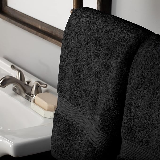 Superior Egyptian Cotton Pile Bath Towel Set of 2, Ultra Soft Luxury Towels, Thick Plush Essentials, Absorbent Heavyweight, Guest Bath, Hotel, Spa, Home Bathroom, Shower Basics, Black
