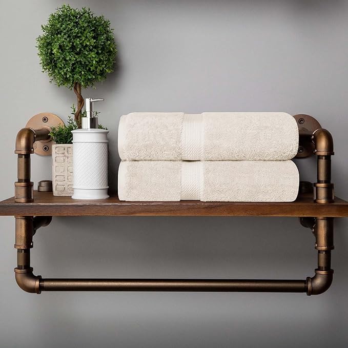Superior Egyptian Cotton Pile Bath Towel Set of 2, Ultra Soft Luxury Towels, Thick Plush Essentials, Absorbent Heavyweight, Guest Bath, Hotel, Spa, Home Bathroom, Shower Basics, Cream
