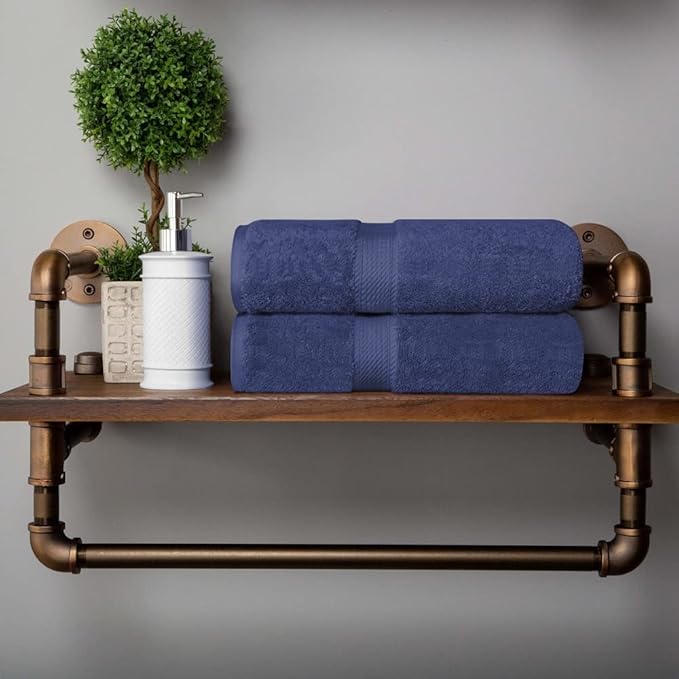 Superior Egyptian Cotton Pile Bath Towel Set of 2, Ultra Soft Luxury Towels, Thick Plush Essentials, Absorbent Heavyweight, Guest Bath, Hotel, Spa, Home Bathroom, Shower Basics, Navy Blue