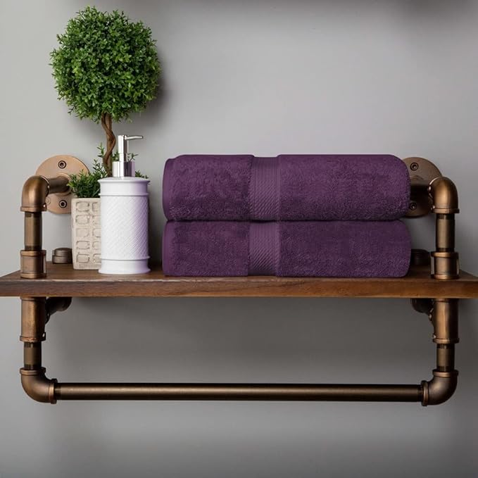 Superior Egyptian Cotton Pile Bath Towel Set of 2, Ultra Soft Luxury Towels, Thick Plush Essentials, Absorbent Heavyweight, Guest Bath, Hotel, Spa, Home Bathroom, Shower Basics, Plum