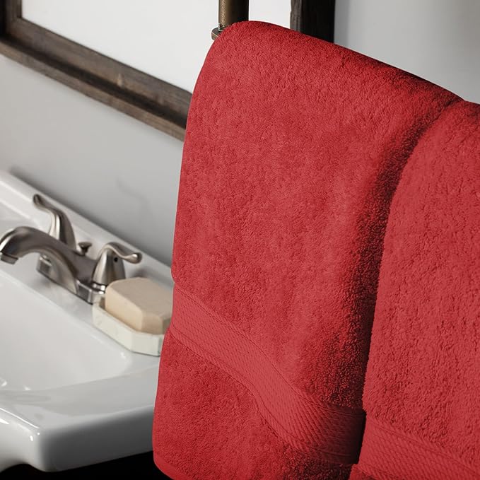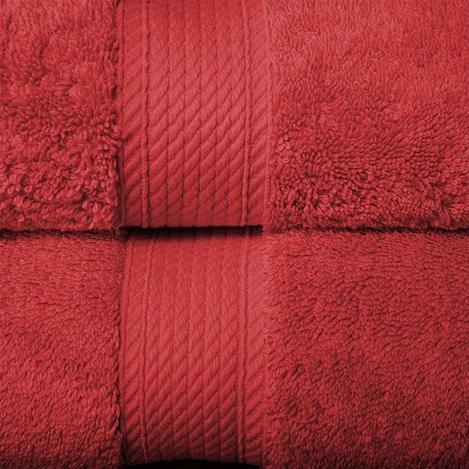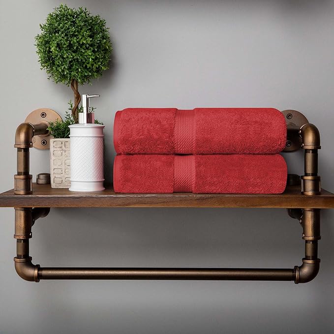 Superior Egyptian Cotton Pile Bath Towel Set of 2, Ultra Soft Luxury Towels, Thick Plush Essentials, Absorbent Heavyweight, Guest Bath, Hotel, Spa, Home Bathroom, Shower Basics, Red