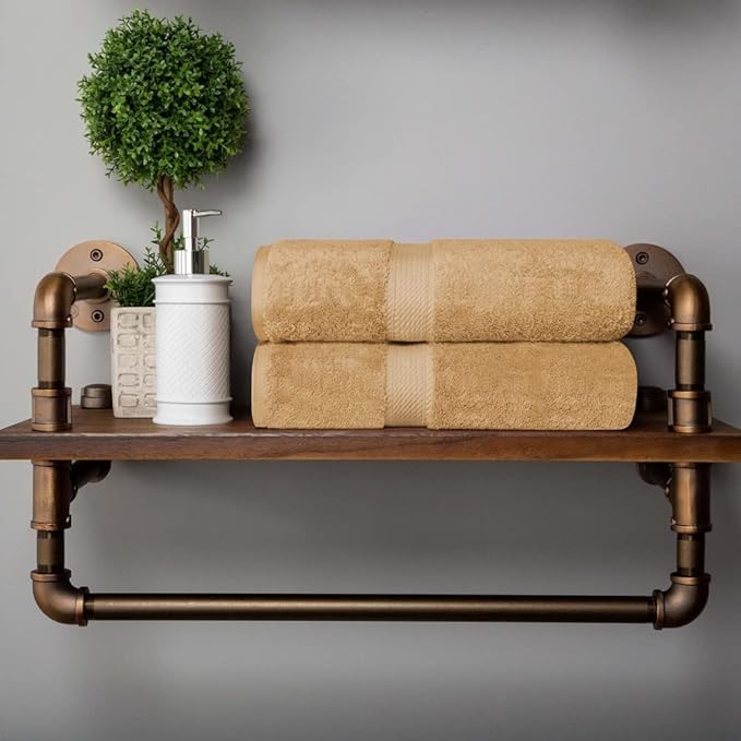 Superior Egyptian Cotton Pile Bath Towel Set of 2, Ultra Soft Luxury Towels, Thick Plush Essentials, Absorbent Heavyweight, Guest Bath, Hotel, Spa, Home Bathroom, Shower Basics, Toast