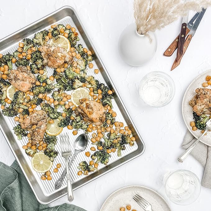 - Unique, ridged surface adds extra strength to pans and facilitates even air circulation and heat distribution