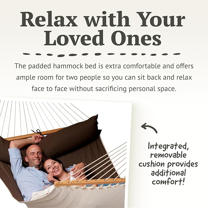 - Extra-wide spreader bar hammock for 1-2 people - 355 lb weight capacity. Includes pillow. The oversized laying area & soft padding create a place of ultimate relaxation - perfect for two people.