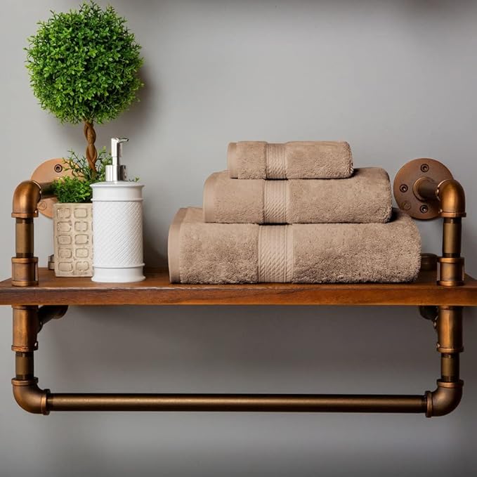 Superior Egyptian Cotton Pile 3 Piece Towel Set, Includes 1 Bath, 1 Hand, 1 Face Towel/Washcloth, Ultra Soft Luxury Towels, Thick Plush Essentials, Guest Bath, Spa, Hotel Bathroom, Latte