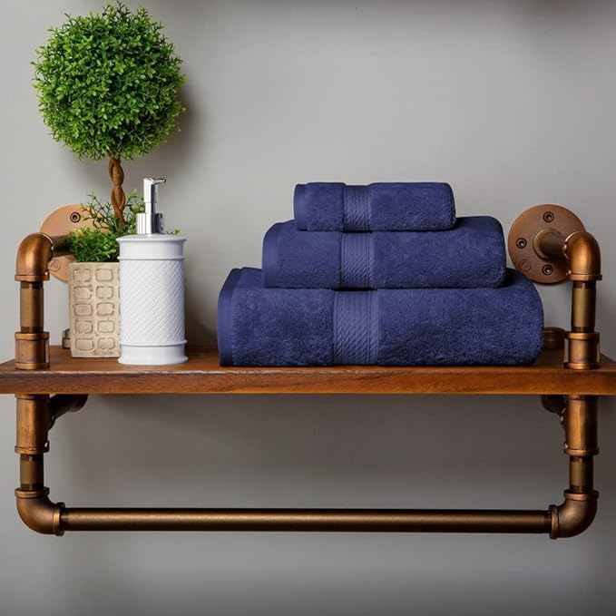 Superior Egyptian Cotton Pile 3 Piece Towel Set, Includes 1 Bath, 1 Hand, 1 Face Towel/Washcloth, Ultra Soft Luxury Towels, Thick Plush Essentials, Guest Bath, Spa, Hotel Bathroom, Navy Blue