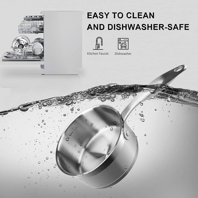 - HIGH QUALITY MATERIAL: This 1.6 quart saucepan is manufactured with food grade 304 stainless steel featuring an impact-bonded base allowing for fast and even heating