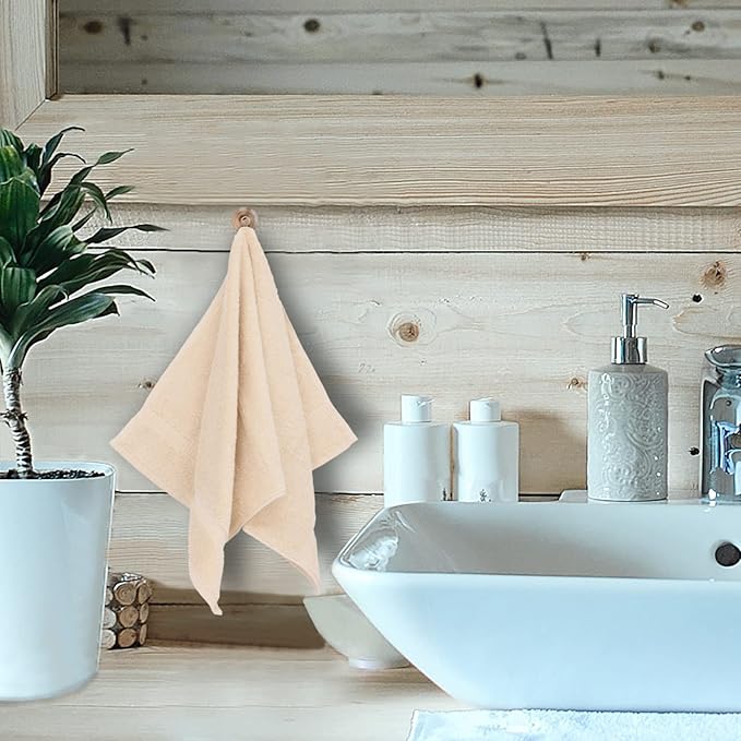 Luxury Hotel & Spa Towel 100% Genuine Turkish Cotton Hand Towels - Beige - Dobby Border - Set of 6