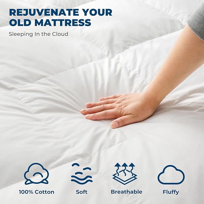 Goose Down Feather Mattress Topper, Full Down Mattress Protector Cover with Straps,Plush Soft Fluffy Baffled Pillowtop, Hypoallergenic Featherbed Cooling Pad All-Season Luxury(54X75 inch)