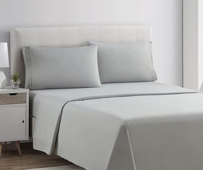 Clara Clark Bed Sheets, Premier 1800 Series 4 Piece Bed Sheet Set, Deep Pocket, Wrinkle, Fade, Stain Resistant, Luxury Soft Bedding Sheets & Pillowcases, Twin, Silver Gray