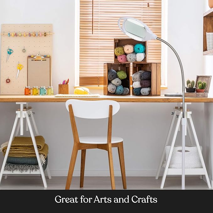 Brightech LightView Pro LED Magnifying Floor Lamp - Daylight Bright Full Spectrum Magnifier Lighted Glass Lens - Height Adjustable Gooseneck Standing Light - for Reading Task Craft Lighting - White