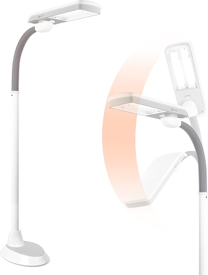 OttLite Standing Floor Lamp with Adjustable Neck, Pivoting Shade Multiuse Lamp - 36w Compact Fluorescent Lamp for Bright Natural Daylight - Modern Home Decor, for Living Room, Reading, Dorm & Office