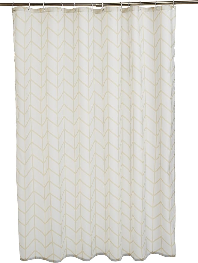 Amazon Basics Bathroom Shower Curtain, Water Resistant Fabric with Grommets & Hooks, Machine Washable, 72"x72", Natural Herringbone