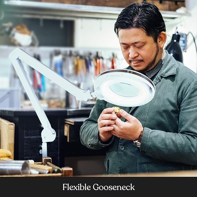 - Hands-free Magnifying Glass with Bright Light for Close Work: The Brightech flexible magnifying floor lamp bends to focus the magnifier and light exactly where you need it, while the circular lens magnifies an entire within a book! Being hands-free, this work light allows you to use both hands to read, perform professional tasks, or enjoy working on crafts and hobbies. The diopter glass will magnify whatever you are working on up to 175%.