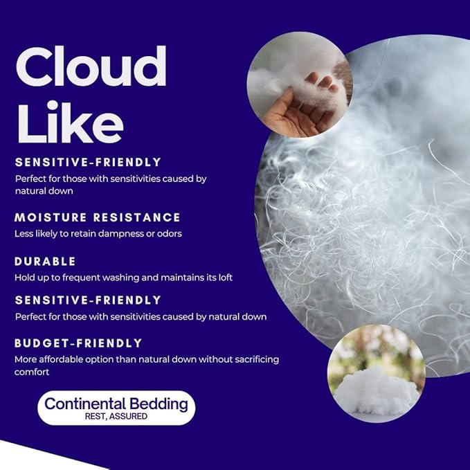 Continental Bedding Standard Size Down Alternative Pillow - Pillow Downlike Bed Pillows for Side, Stomach, Back Sleepers - Set of 1 Pack