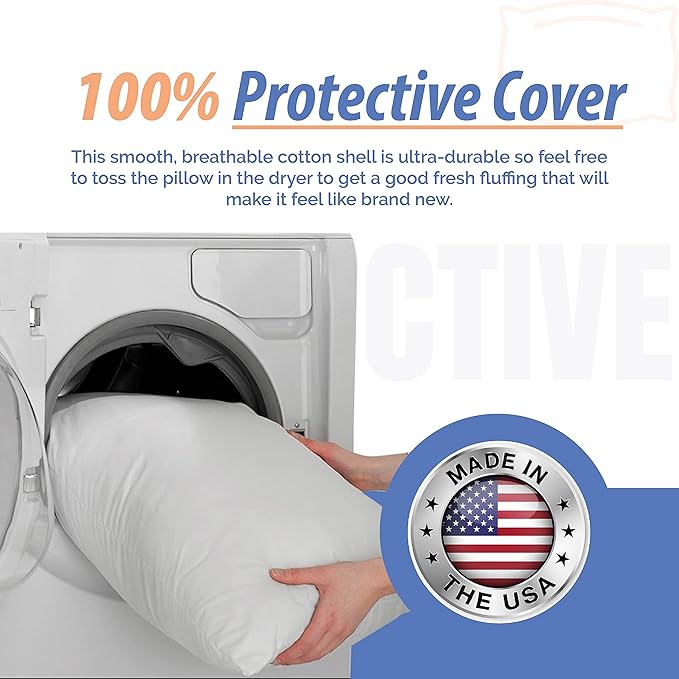 - PLUSH PILLOW WITH COTTON COVER: This pillow features polyester fibers wrapped in a highly durable and breathable pillowcase made of soft cotton with a thread count of 300. The natural cotton cover allows for easy machine washing, ensuring a simple and quick refresh that leaves the pillows feeling brand new.