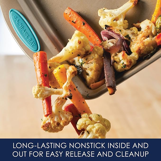 - EVERYDAY DURABILITY: This Rachael Ray nonstick bakeware set features heavy gauge steel construction with rolled-rim bake pan edges designed for easy, everyday use