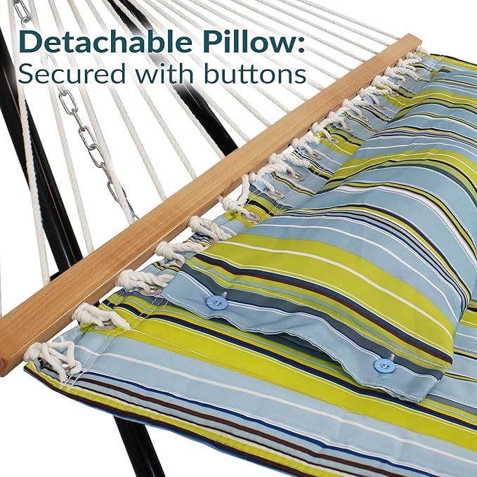 - VIBRANT DESIGNS TO COMPLEMENT ANY DECOR: This 2-person hammock with pillow is available in a variety of colorful patterns to complement anyone's style. Plus, the fabric has been dye-treated which provides UV resistance to help prevent fading.
