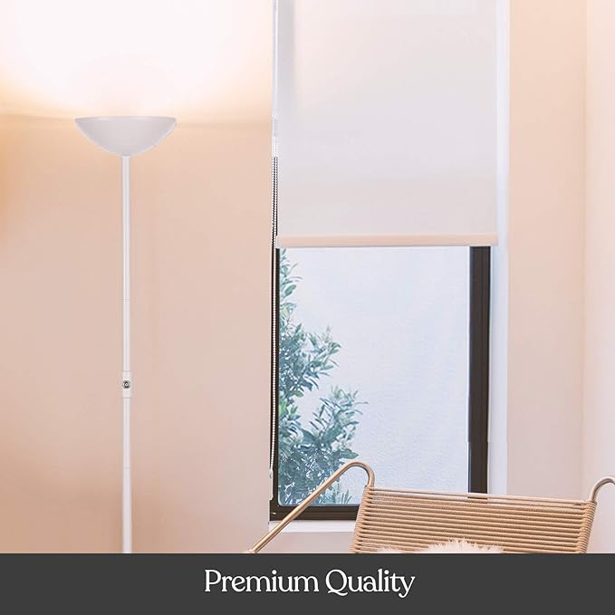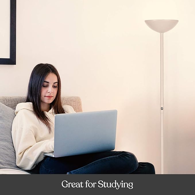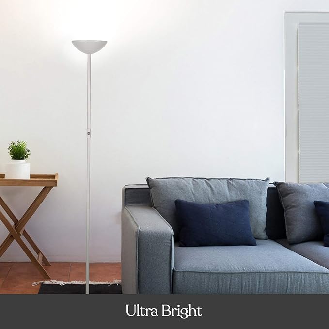 Brightech SkyLite LED Floor lamp, Torchiere Super Bright Floor Lamp for Living Rooms & Offices - 3 Way Dimmable Tall Lamp, High Lumen Standing Pole Lamp for Bedroom Reading - White