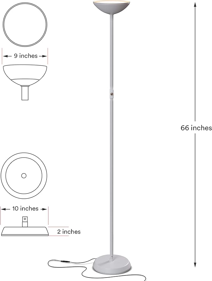 - 20 Years Lifespan Tall Lamp: The SkyLite has a built-in 24 Watt power-saving LED light with a 20,000-hour life, allowing for about 20 years of regular use. LEDs work much more efficiently than halogen or incandescent lights, making this lamp a great choice for the environment and energy savings! Its 3,000K warm white color light emits a very bright glow without being too harsh on the eyes.
