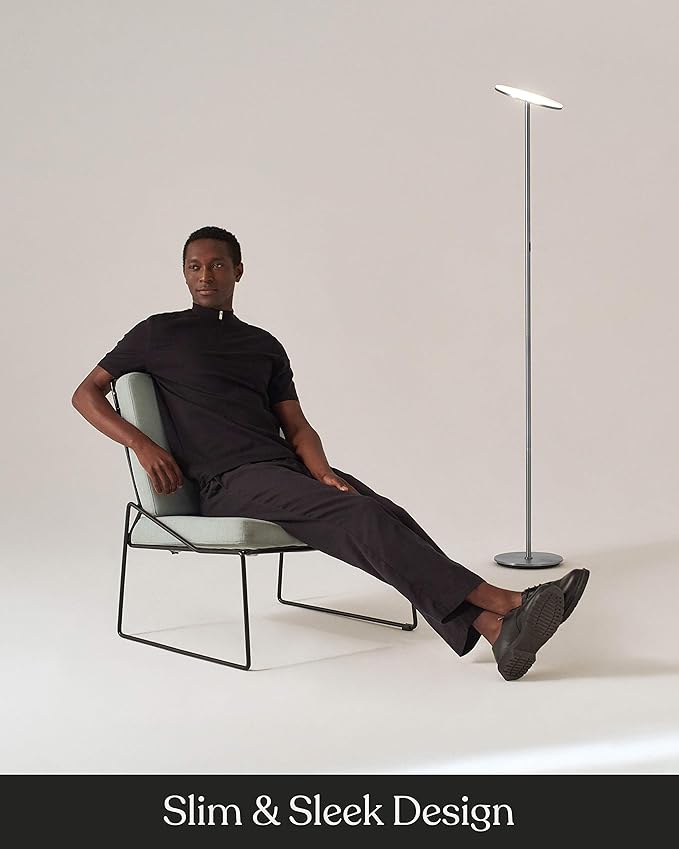 - 3-Way Dimmer and Memory Mode: The contemporary living room decor fits easily in corners and the base slides under sofas. Adjust brightness level with a simple touch of a button featuring three dimmer settings with this LED floor lamp. The rotating head of this tall lamp lets you angle the light for a greater light effect when desired. The standing lamp has a memory function to remember your last brightness setting when you turn the lamp on and works with wall switches.