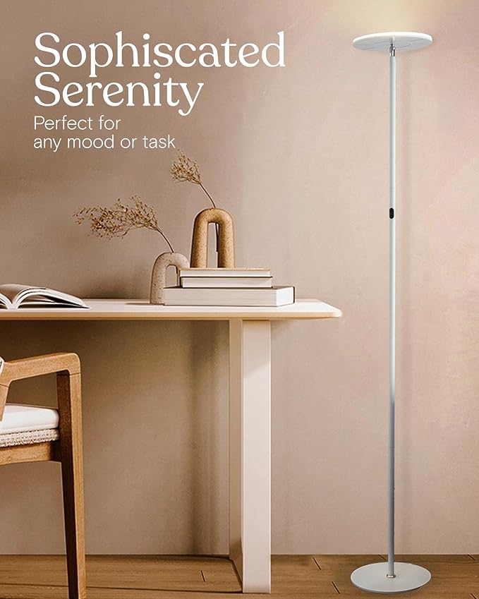 Brightech Sky LED Torchiere Super Bright Floor Lamp - Contemporary, High Lumen Light for Living Rooms and Offices - Dimmable, Indoor Pole Uplight for Bedroom Reading - White