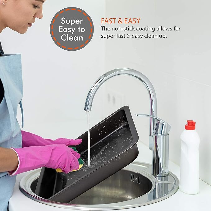 - HEALTHY NON-STICK COATING: The baking pans are made with a healthy organic coating that is BPA Free and 100% safe. The nonstick coating helps food shouldn't stick to the tray and allows for quick food release. The food just slides off the tray ready to be served.