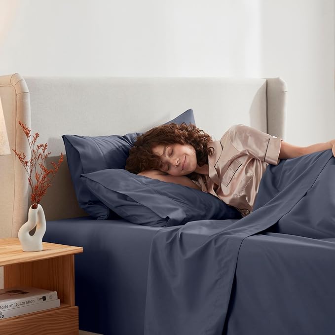 Nestl Short Queen Sheet Set - 1800 Ultra-Soft Microfiber - Double Brushed - Deep Pockets - Easy Fit - 4 Piece Set - Bed Sheets (Short Queen, Navy Blue)
