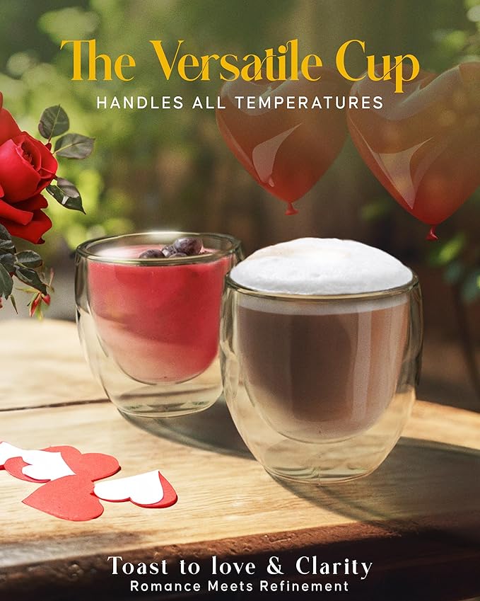 - Enjoy Hot or Cold Drinks Even Longer - Crafted with precision, our double walled glass coffee mugs ensures your hot drinks stay hot and your cold drinks stay cold, allowing you to relish every sip without compromise. Say hello to extended enjoyment with these clear glass coffee mugs that are as versatile as they are stylish. ¡Disfruta de tus bebidas calientes o frías por más tiempo con estas tazas para café de vidrio transparente de Kitchables!