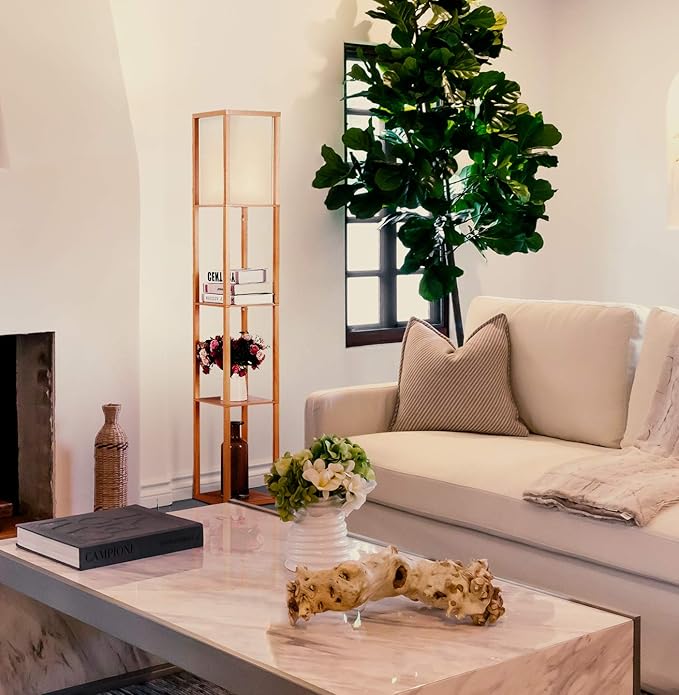 - Triple Storage Lamp & Shelf Combo: This durable tall lamp with stable structure, high loading lends a soft ambient glow to contemporary spaces while providing a 3 tiered display shelving for added convenience. Style and function combine to brighten up your room and provide a storage or display area for vases, books, or other items. Utilize the convenience of this floor lamp in your bedroom, living room, guest room, foyer, or office.