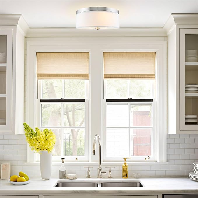 - [EASY INSTALLATION] Perfect in kitchens over sinks, a breakfast nook / kitchenette, in living rooms / dining rooms, in bathrooms / powder rooms or guest bedrooms, to illuminate hallways / entryways or in laundry rooms. This sleek flush mount is very popular in hospitality settings such as hotels as well as custom homes and apartments. Even a great addition to closets and pantries!