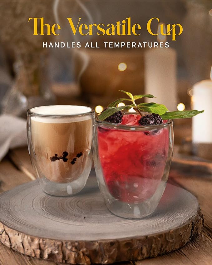 - Enjoy Hot or Cold Drinks Even Longer - Crafted with precision, our double walled glass coffee mugs ensures your hot drinks stay hot and your cold drinks stay cold, allowing you to relish every sip without compromise. Say hello to extended enjoyment with these clear glass coffee mugs that are as versatile as they are stylish. ¡Disfruta de tus bebidas calientes o frías por más tiempo con estas tazas para café de vidrio transparente de Kitchables!