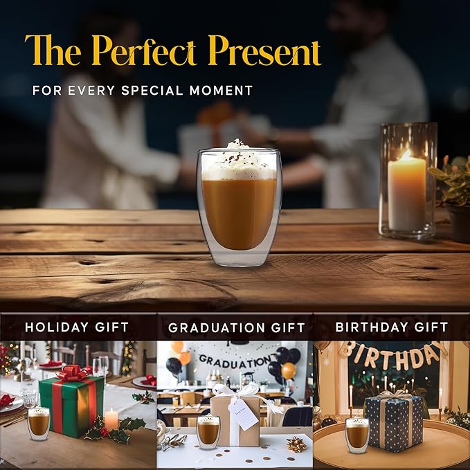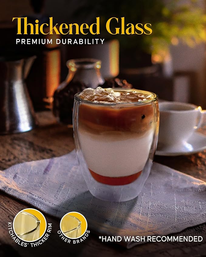 - Thoughtful Gift For Any Occasion - Enjoying your cappuccino or latte mug? Share the joy with others! Functional and stylish, Kitchables’ double walled glass coffee mugs are practical, memorable gifts for your loved ones.