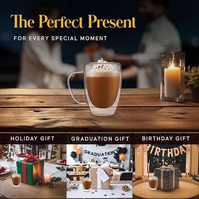 - Durable Glass Coffee Mugs - Made of Grade AA borosilicate glass, our insulated clear glass coffee glass mugs are a great addition to your kitchen. These scratch-resistant clear mugs are built to last for years with proper care.