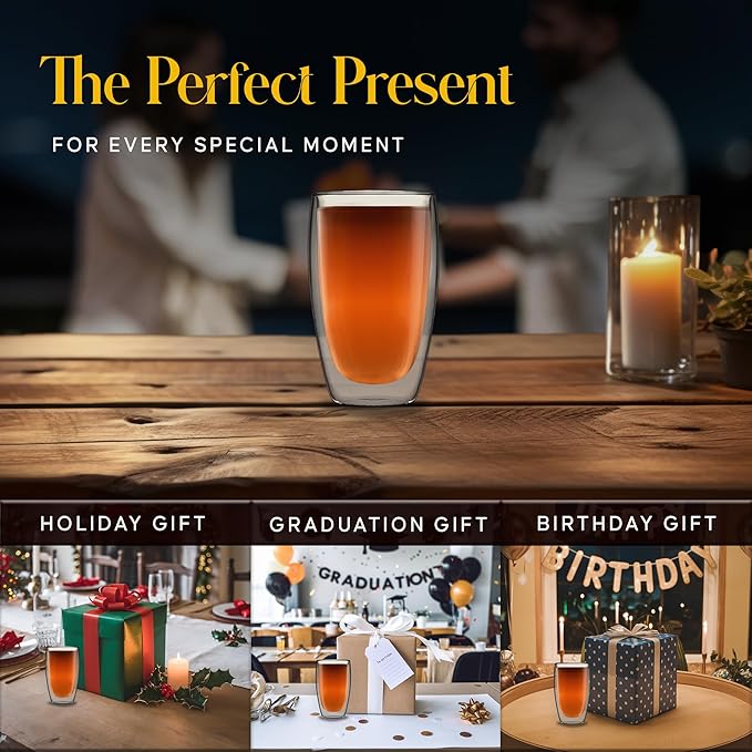 - Thoughtful Gift For Any Occasion - Enjoying your cappuccino or latte mug? Share the joy with others! Functional and stylish, Kitchables’ double walled glass coffee mugs are practical, memorable gifts for your loved ones.