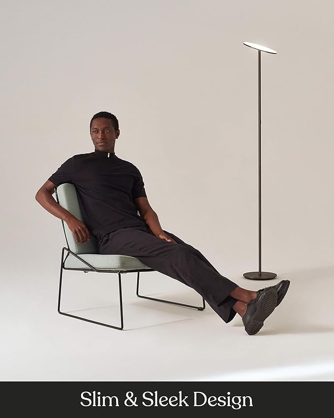 Brightech Sky LED Floor lamp, Torchiere Super Bright Floor Lamp for Living Rooms & Offices - Dimmable, Tall Standing Lamp for Bedroom Reading - Bronze
