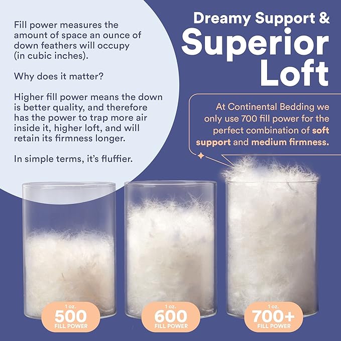 - 700 Fill Power Down | Ultra-light and plush yet supportive.