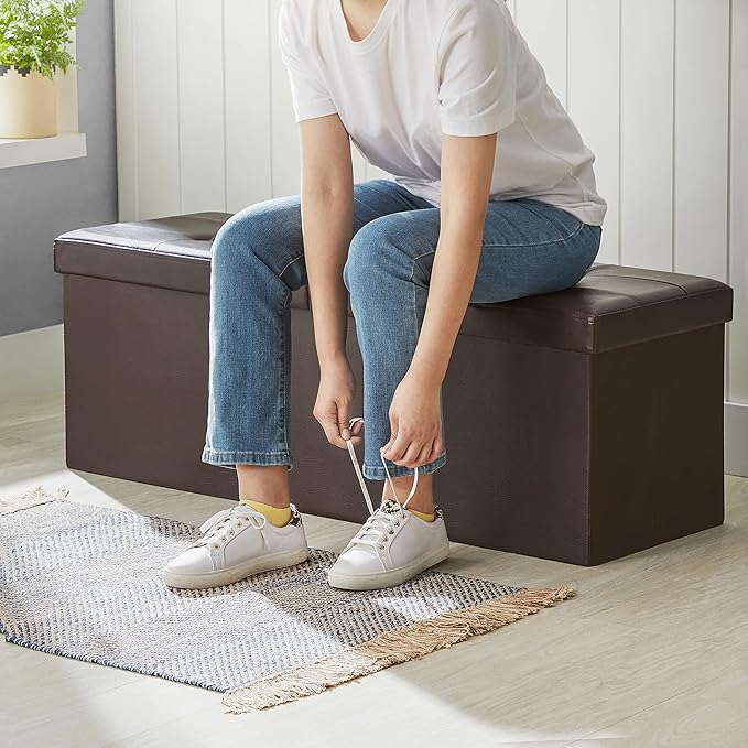 - 【BUILT TO LAST】Featuring sturdy MDF panels for the tops and sides, and a lid reinforced with metal corner guards, the folding storage bench can hold up to 660 lb (300 kg). Its solid construction ensures it will last for years to come