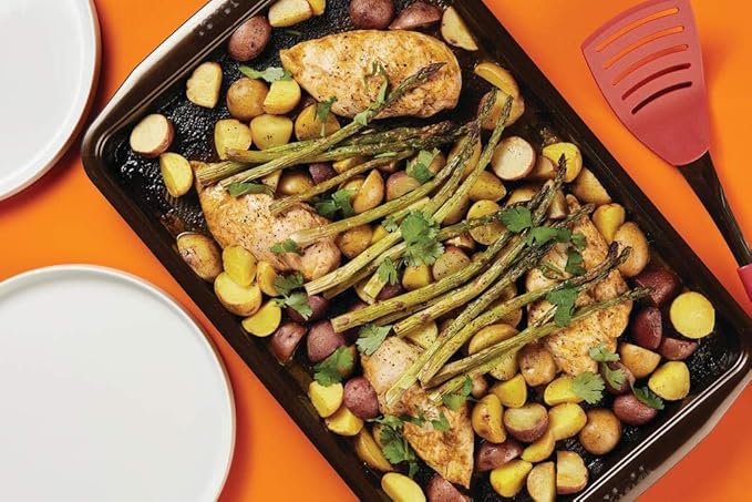 - COOKIE SHEETS STAND UP TO TIME: Heavy-duty steel construction offers uniform heat distribution, and the cookie sheets’ warp-resistant rolled edges provide extra strength