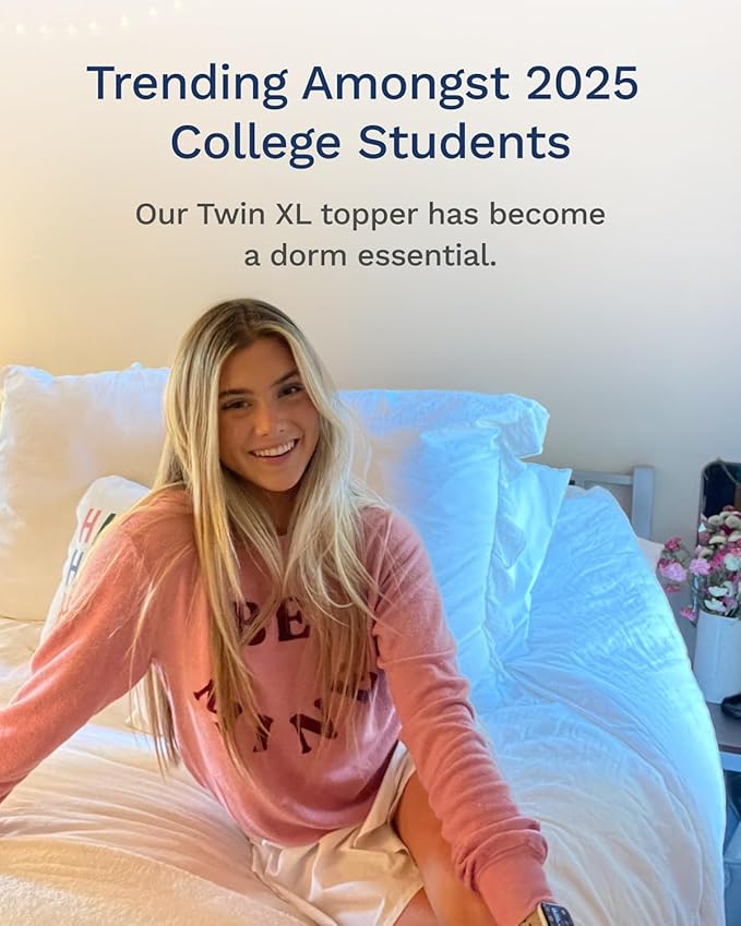 - Designed for College Life – Secure Fit & Easy Maintenance: The bed is a college dorm's comfort hub—whether you’re sleeping, studying, or lounging. The Viscosoft Hybrid Lux Twin XL topper stays securely in place with an 18-inch skirt and reinforced elastic, preventing slipping and bunching on dorm mattresses. No more constantly adjusting your topper—just a snug, supportive fit that stays put. Plus, the removable, machine-washable cover makes keeping your sleep space clean nearly effortless.