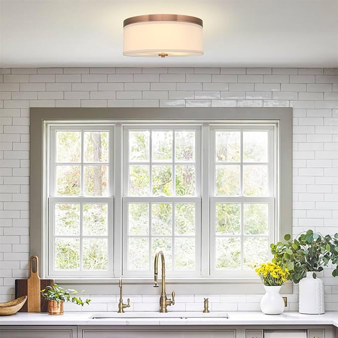 - [EASY INSTALLATION] Perfect in kitchens over sinks, a breakfast nook / kitchenette, in living rooms / dining rooms, in bathrooms / powder rooms or guest bedrooms, to illuminate hallways / entryways or in laundry rooms. This sleek flush mount is very popular in hospitality settings such as hotels as well as custom homes and apartments. Even a great addition to closets and pantries!