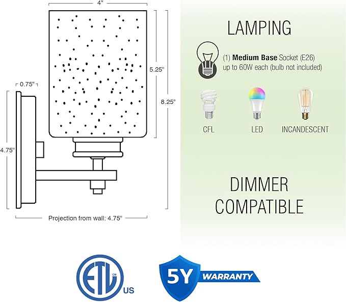 - [FITS MANY DECOR STYLES WITH UNMATCHED WARRANTY] This modern wall light fixture with opaque seeded glass shade complements all decor styles from traditional and contemporary, to farmhouse and minimalist designs. Enjoy peace of mind with our 1-year warranty, guaranteeing your complete satisfaction