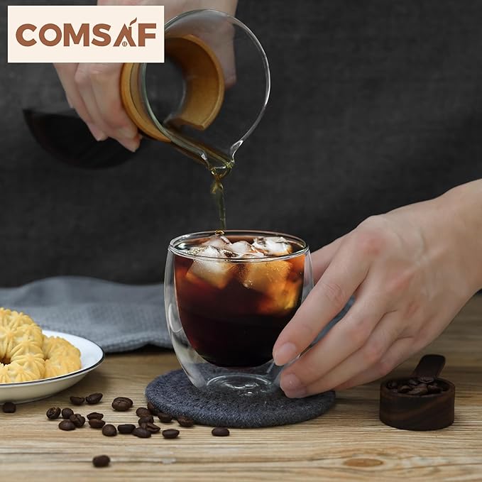 - Handle-free Design: The coffee cups are designed with sleek lines and the handle-free design allows for easy stacking, facilitating convenient storage. Crafted from heat-resistant borosilicate glass, our comsaf clear glass coffee cups are built to last.