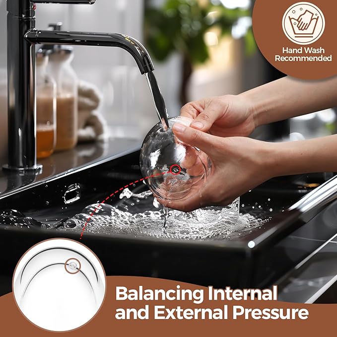 - Cleaning Precautions: A strategically placed small hole facilitates pressure balance between the glass layers, ensuring consistent durability. For optimal maintenance, handwashing is highly recommended.