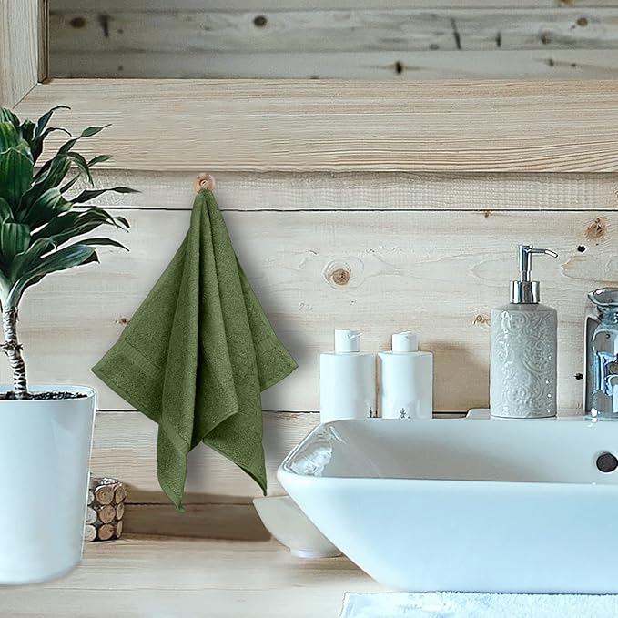 Luxury Hotel & Spa Collection, Quick Dry 100% Turkish Cotton 700 GSM, Eco Friendly Towel, for Bathroom, Gymand Kitchen Dobby Border Soft Hand Towel Set 16 X 30, Moss, Hand Towels - Set of 6
