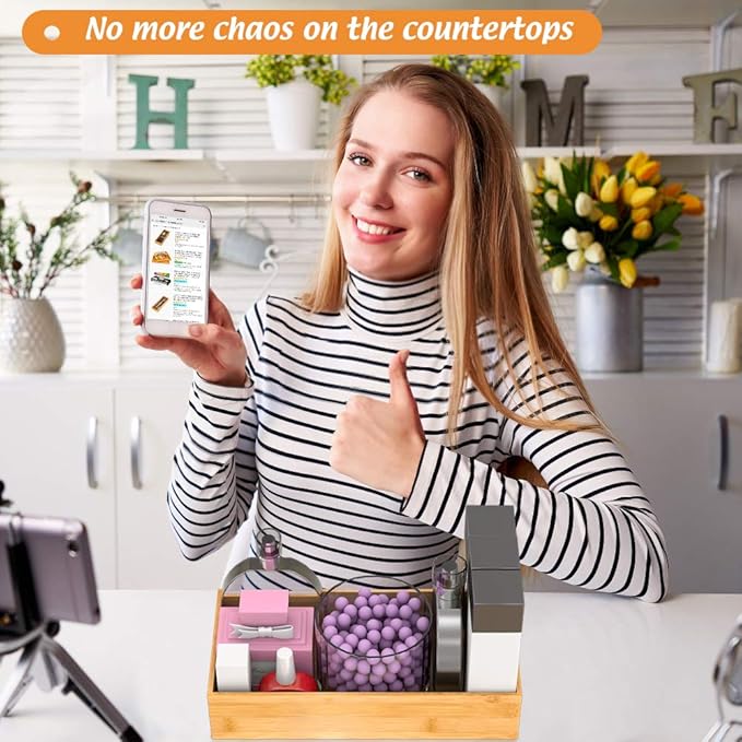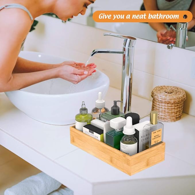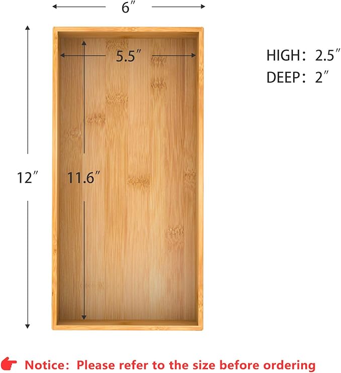 - 【Multi-functional Storage Box】 This deep bamboo organizer boxes are good for organizing items, such as forks, spoons, and knives in kitchen; brushes, soap dispenser and toilet paper in bathroom; cosmetics, makeup tools and hair accessories in makeup room; documents, pens and paper clips in office. Try this bamboo storage box organizer - ending clutter in your office desk and kitchen drawer.