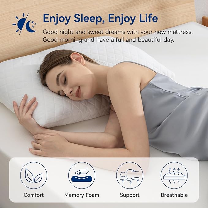 - Plush-feeling memory foam adapts to the contours of the body and comfortably conforms to different sleeping positions