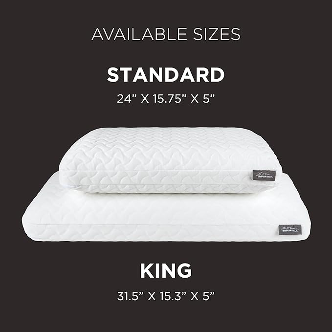 - 5 in thick standard pillow with premium TEMPUR material never loses shape
